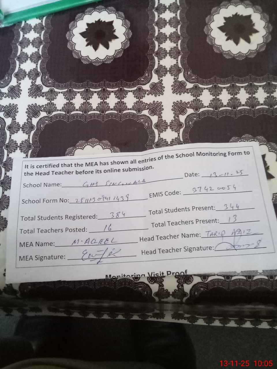 | EMIS Code: 37420054 | Name of School: GHS SINGWALA | |||