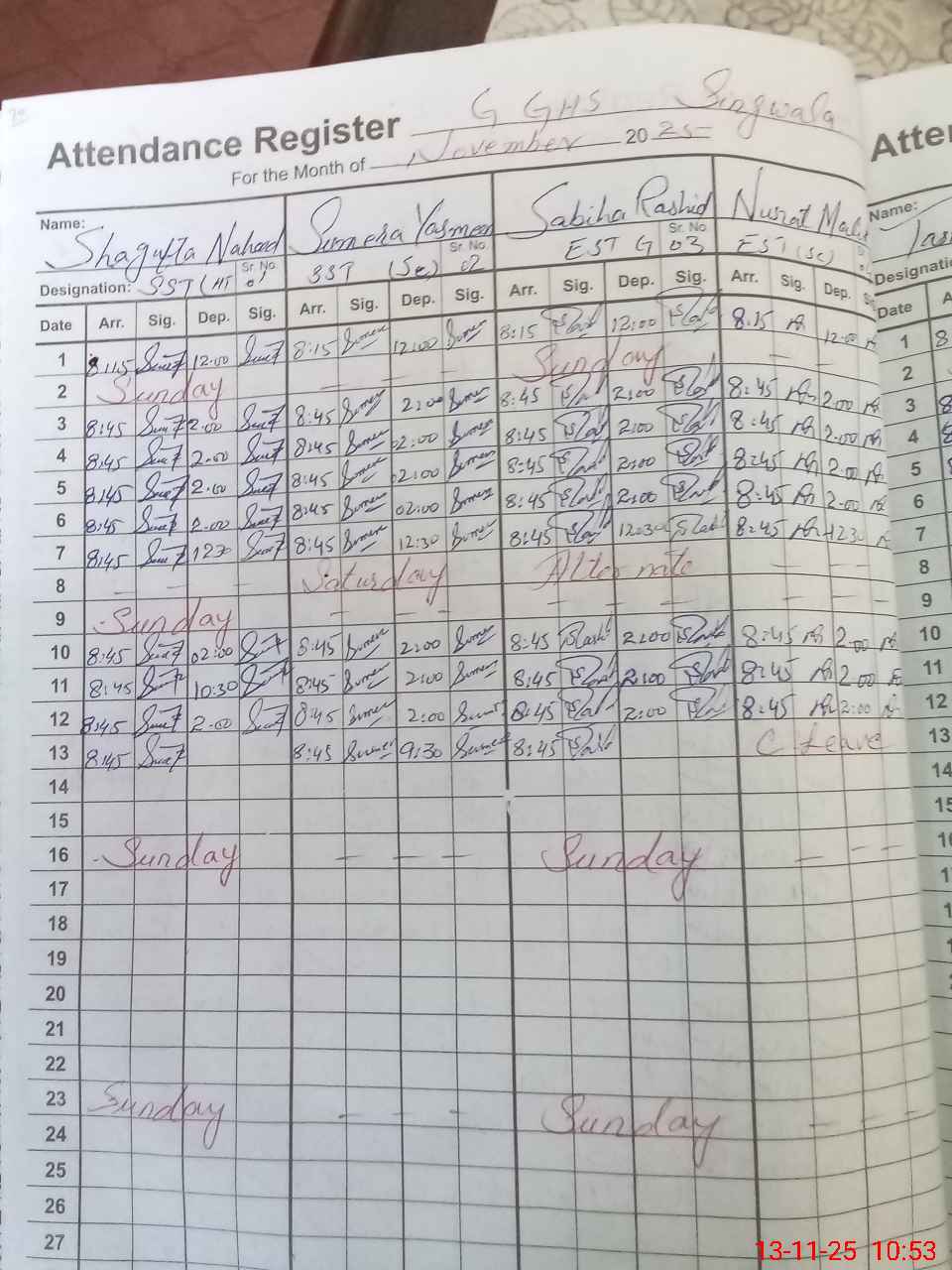 | 37**** | Nu**** Ma**** | ESE Science | Regular | 0 | 0 | 0 | 0 | 0 | 0 | 0 | 0 | 0 | Casual |