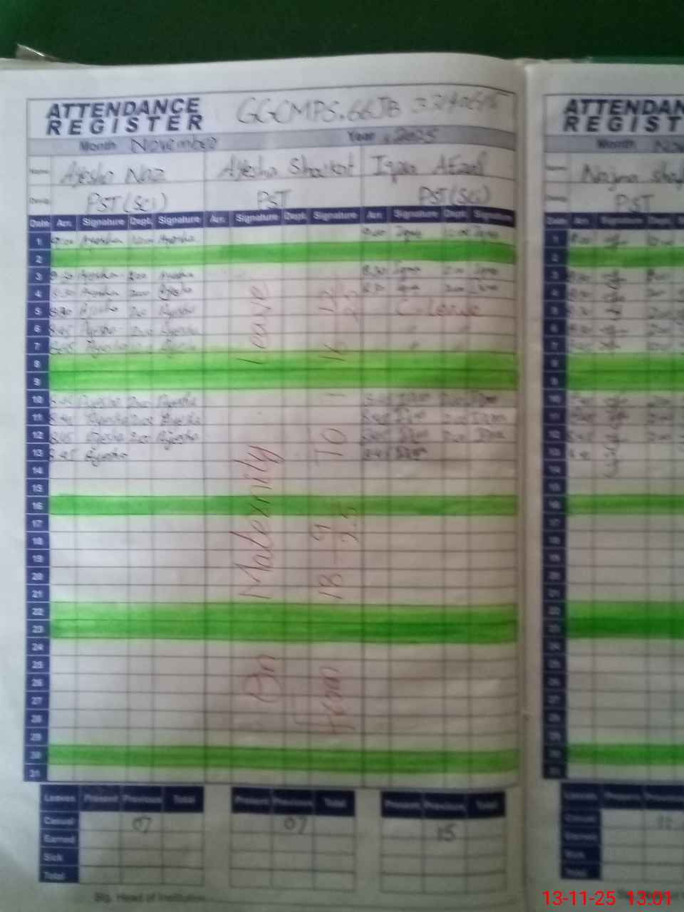 | 33**** | Ay**** Sh**** | Regular | 31 | 0 | 0 | 31 | 0 | 0 | 0 | 0 | 0 | Maternity | |