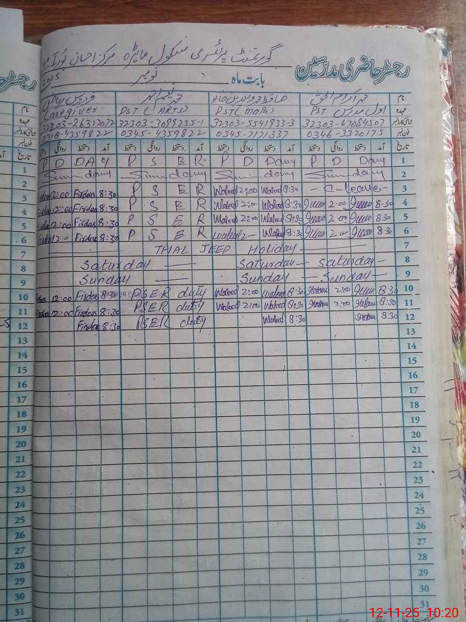 | CNIC | Full Name | Designation | R/C | Absence During Last Calender Month |