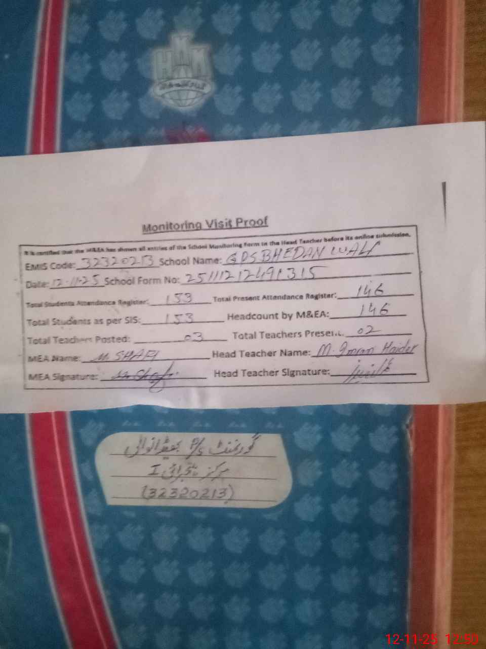 | EMIS Code: 32320213 | Name of School: GPS BHEDAN WALI | |||