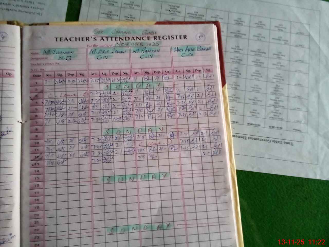 | CNIC | Full Name | Designation | R/C | Absence During Last Calender Month |