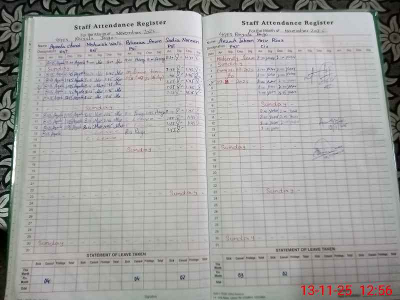 | CNIC | Full Name | Designation | R/C | Absence During Last Calender Month |