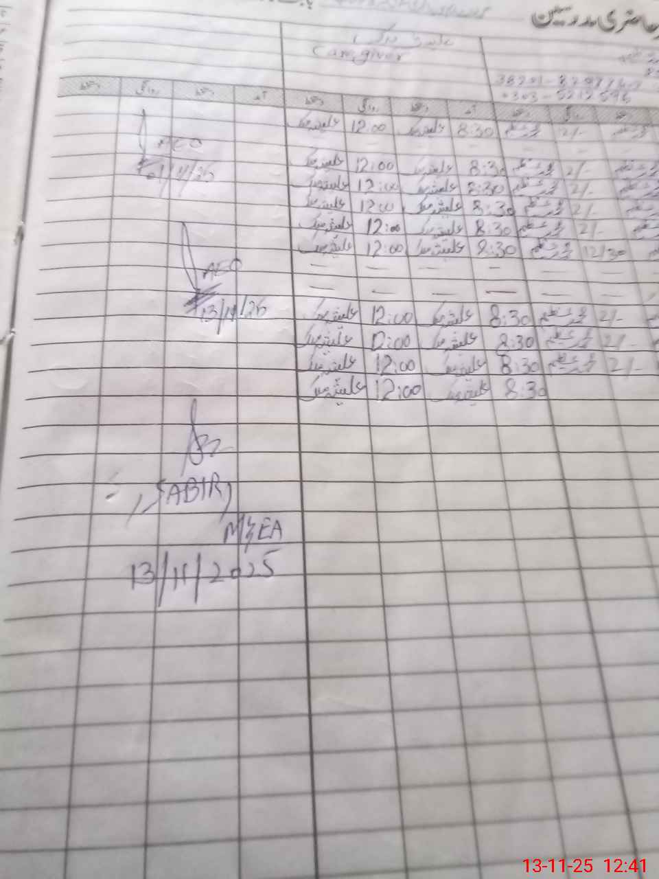 | CNIC | Full Name | Designation | R/C | Absence during last cal. month |