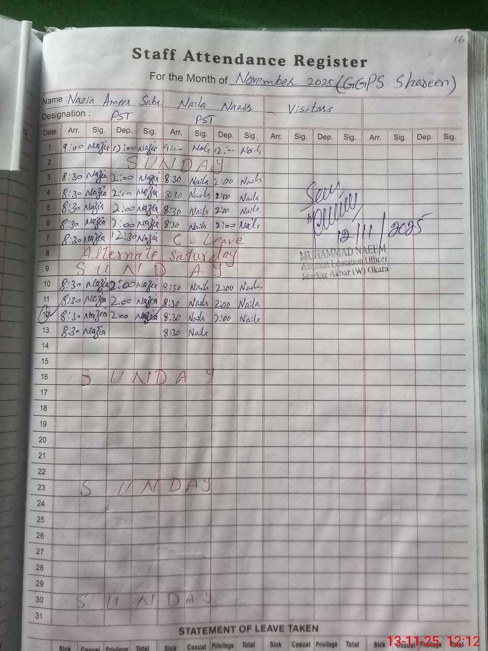 | Remarks (Use Separate Page if Required): Last admin visit by AEO on 12 November 2025 | |||||