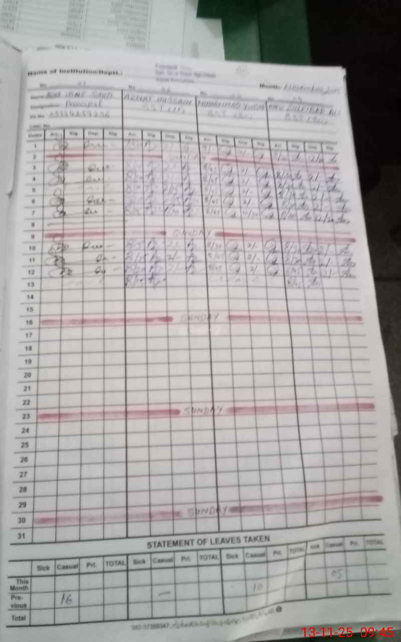 | 35**** | Ib**** Sa**** | ESE | Regular | 0 | 0 | 0 | 0 | 0 | 0 | 0 | 0 | 0 | Absent (Un-Authorized) |