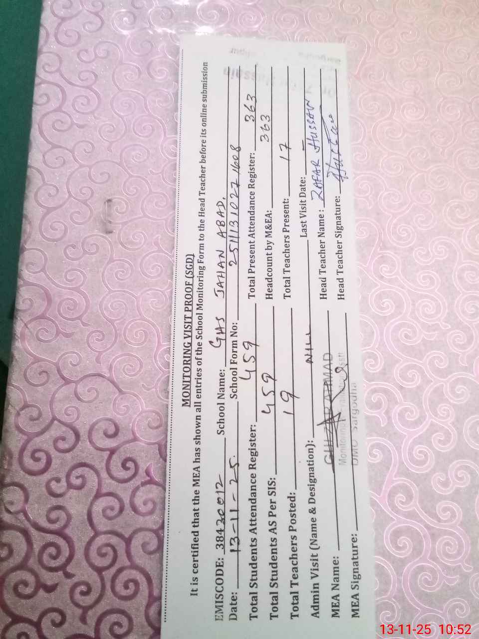| EMIS Code: 38430012 | Name of School: GHS JAHANABAD | |||