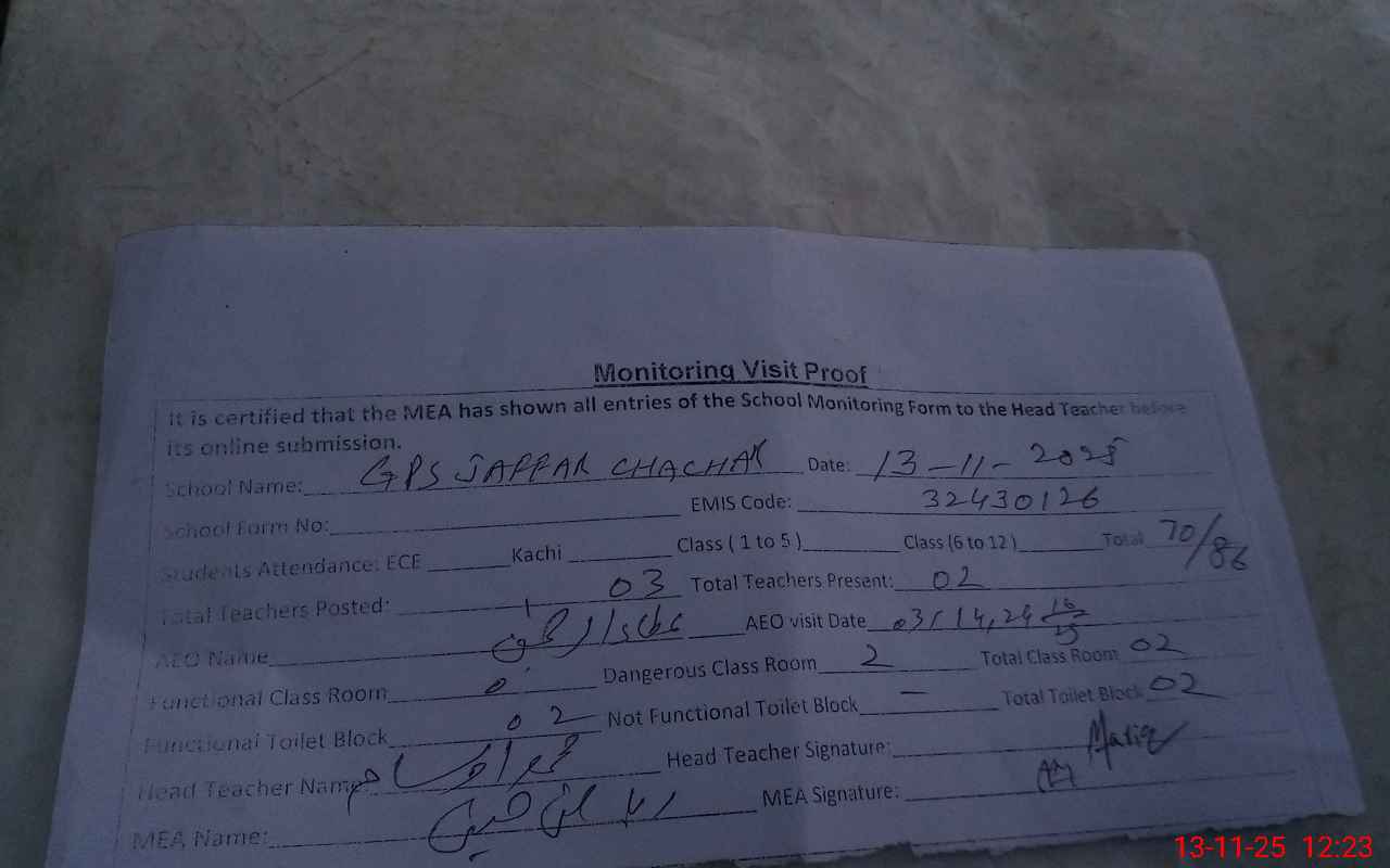 | EMIS Code: 32430126 | Name of School: GPS JAFFAR CHACHAR | |||