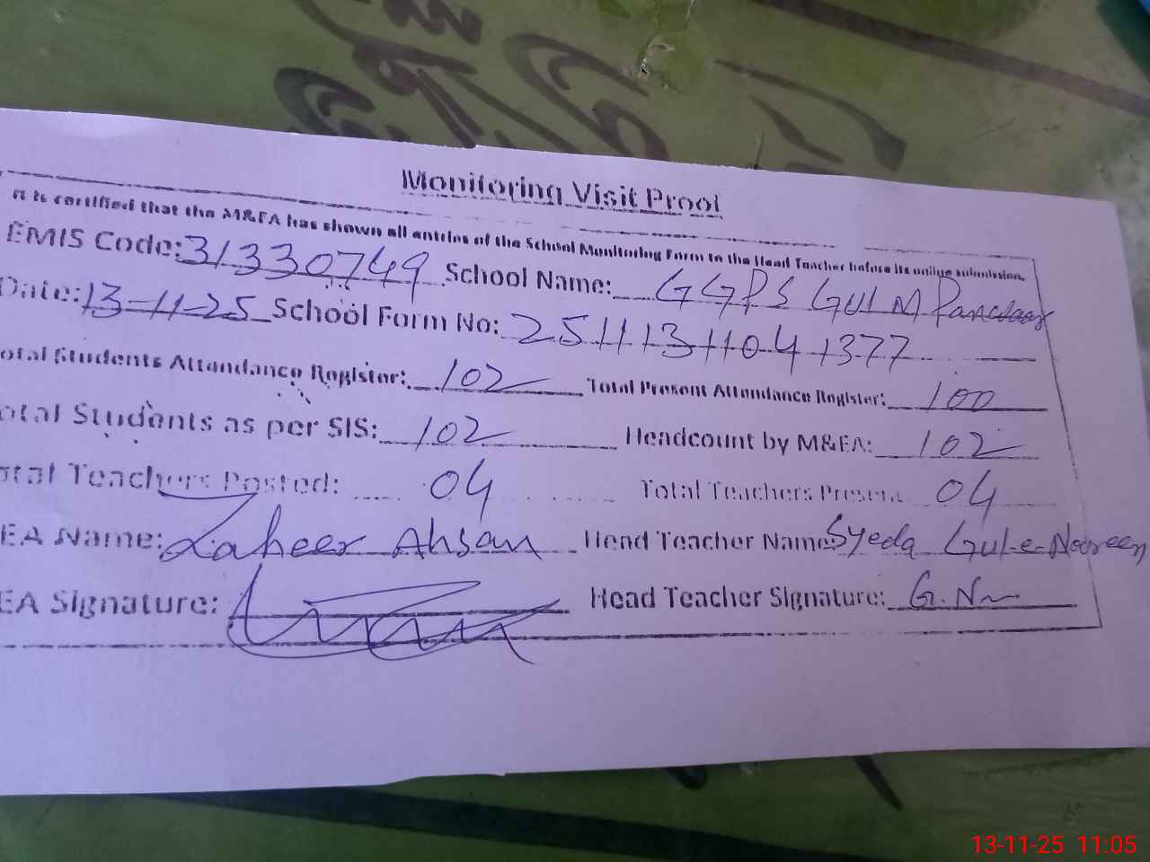 | EMIS Code: 31330749 | Name of School: GGPS GUL MUHAMMAD PANWAR | |||