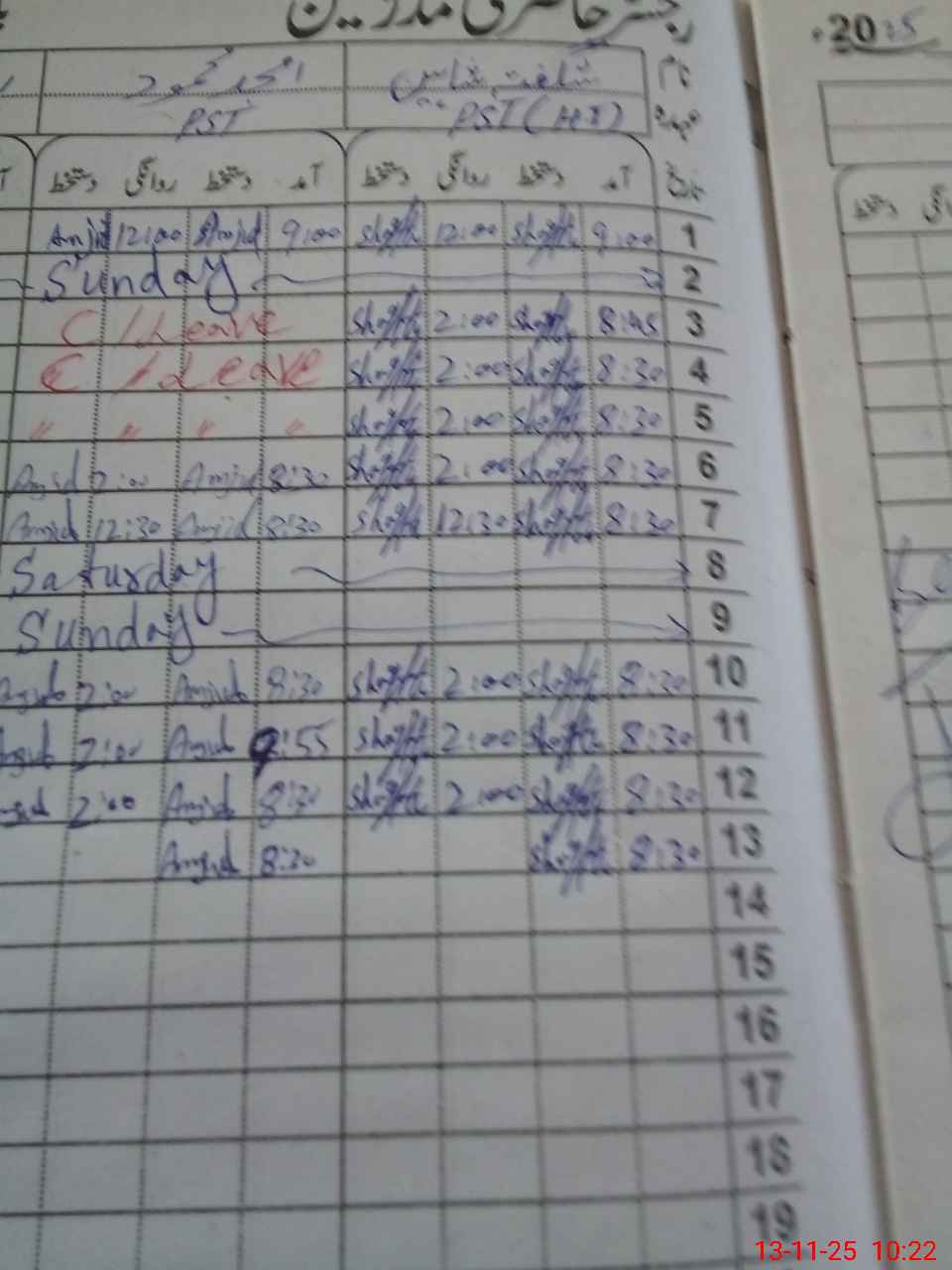 | CNIC | Full Name | Designation | R/C | Absence During Last Calender Month |