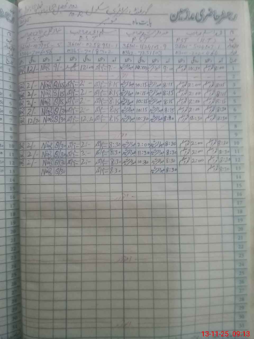 | CNIC | Full Name | Designation | R/C | Absence During Last Calender Month |