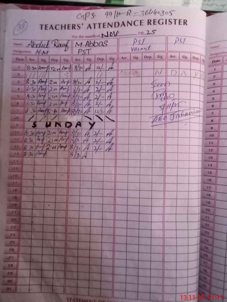 | Name: Ab**** Ra**** Designation: (School Headmaster's/Headmistress's) PST Phone/Cell Number: 03**** |