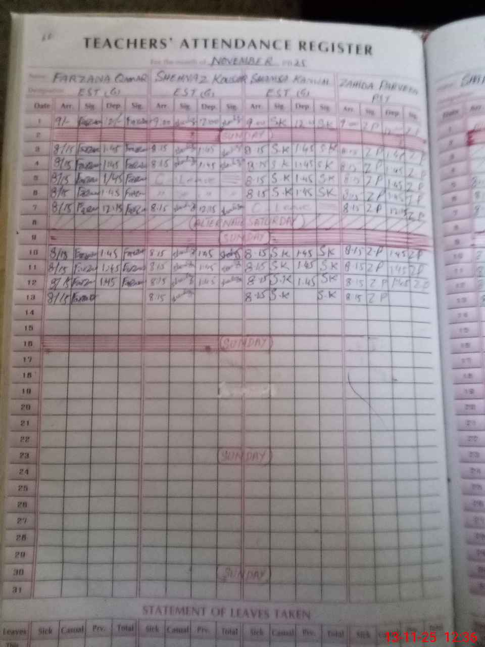 | 36**** | Sh**** Kh**** | ESE Physical Education | Regular | 0 | 0 | 0 | 0 | 0 | 0 | 0 | 0 | 0 | Casual |