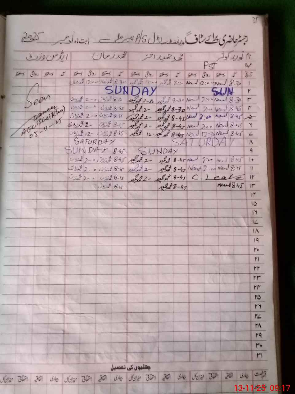 | CNIC | Full Name | Designation | R/C | Absence During Last Calender Month |