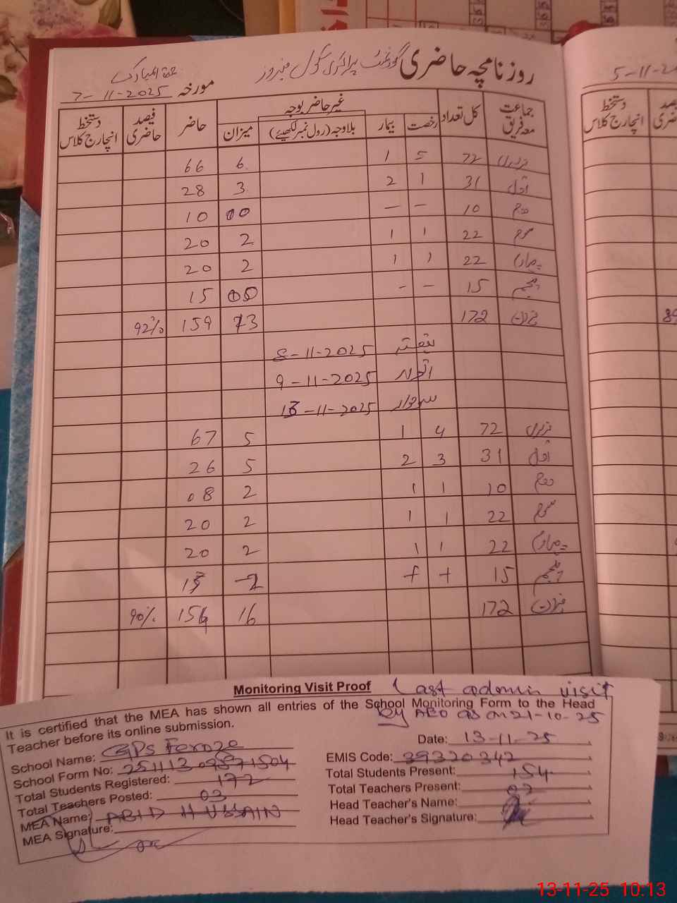 | EMIS Code: 39320342 | Name of School: GPS FEROZE | |||