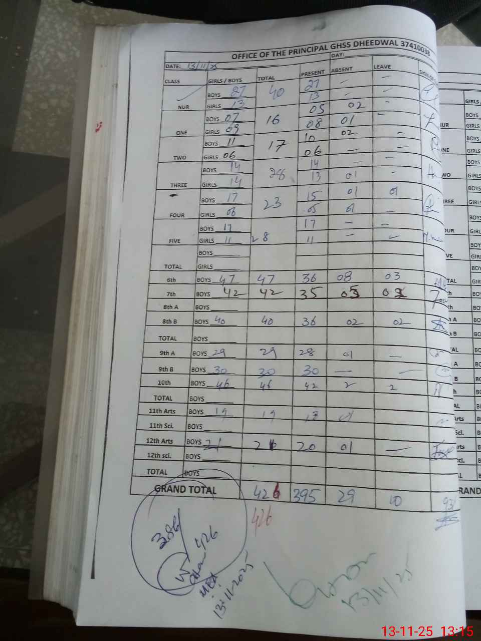 | Total no. of Classrooms: 25 No. of Classrooms Used for Teaching: 15 No. of Classrooms Storing Old Furniture, FTBs, etc: 0Comments if Any: 0 |
