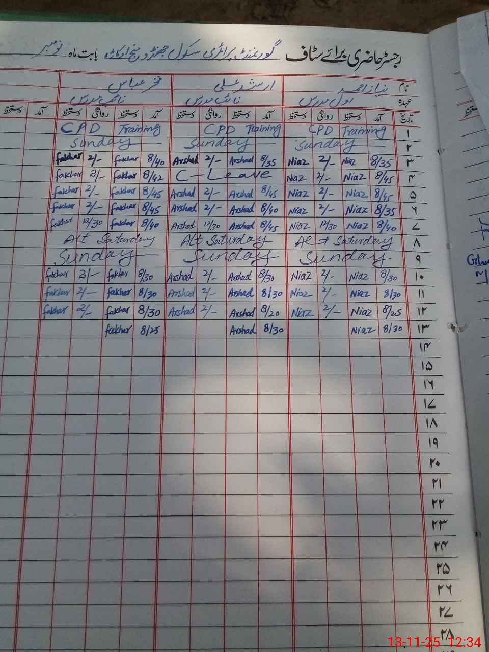 | CNIC | Full Name | Designation | R/C | Absence During Last Calender Month |