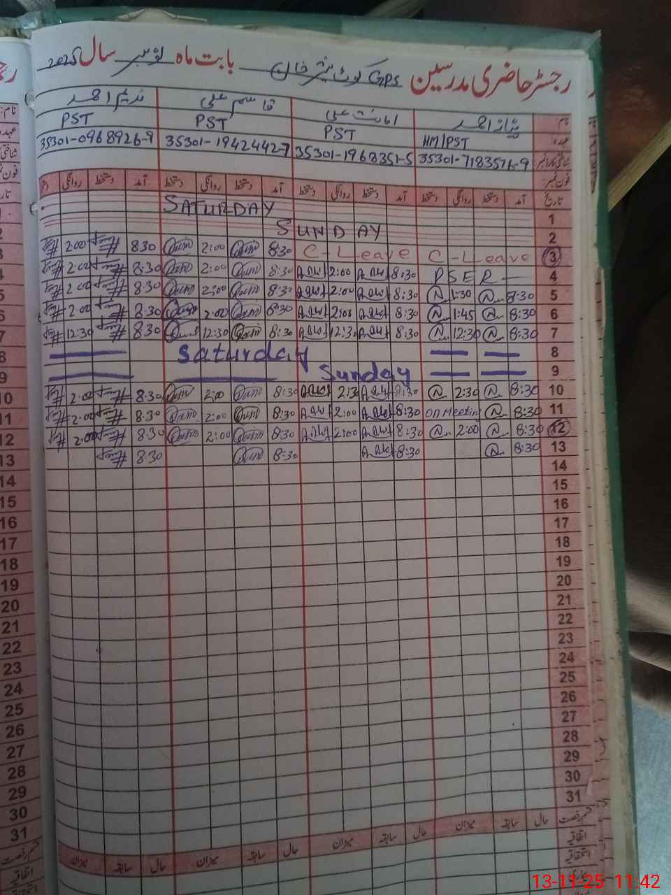 | CNIC | Full Name | Designation | R/C | Absence During Last Calender Month |