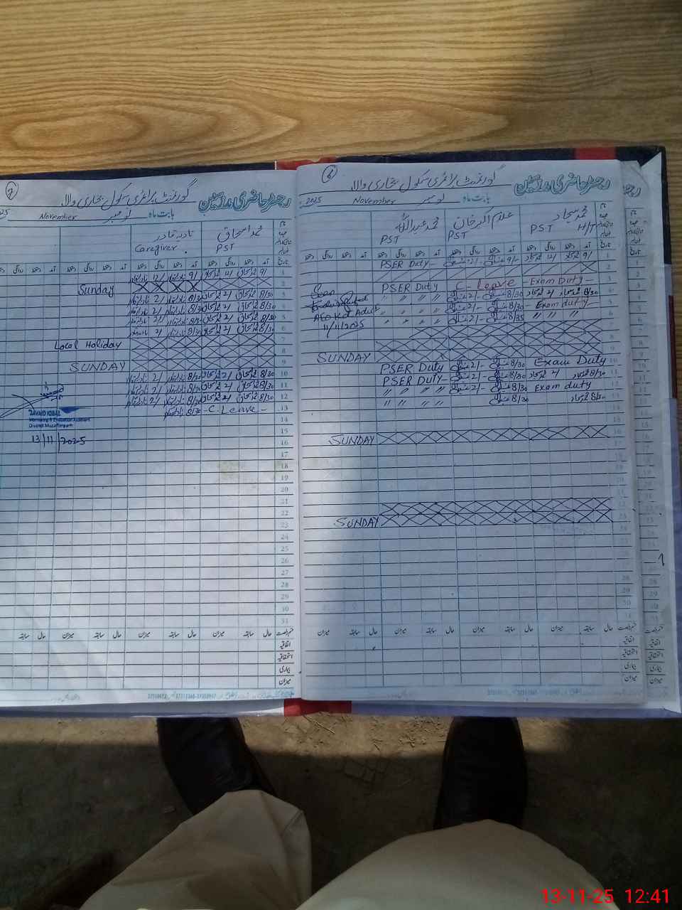 | CNIC | Full Name | Designation | R/C | Absence During Last Calender Month |