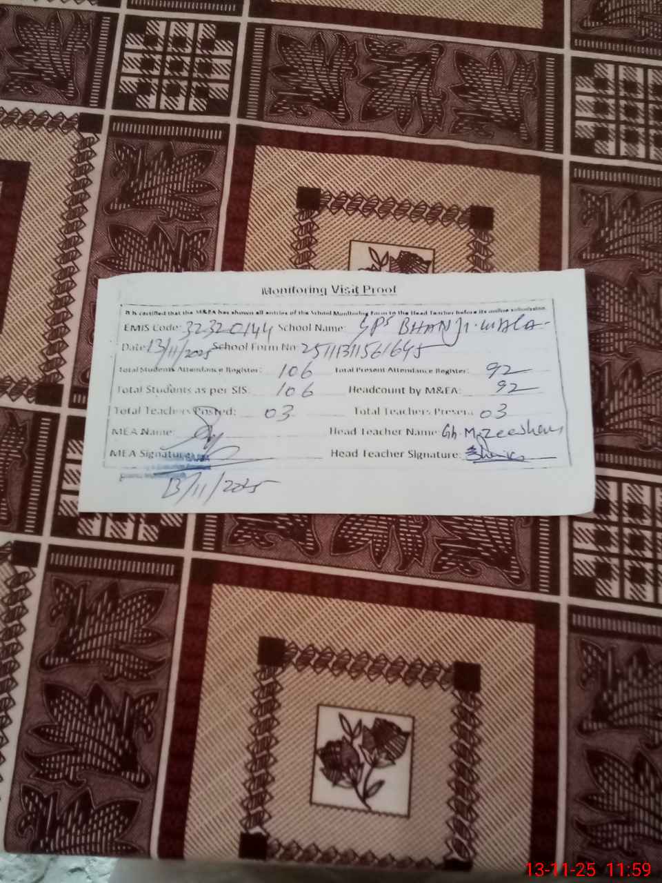 | EMIS Code: 32320144 | Name of School: GPS BHANGI WALA | |||