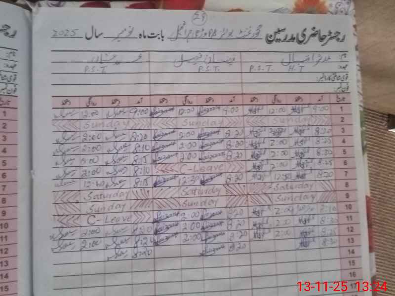 | CNIC | Full Name | Designation | R/C | Absence During Last Calender Month |
