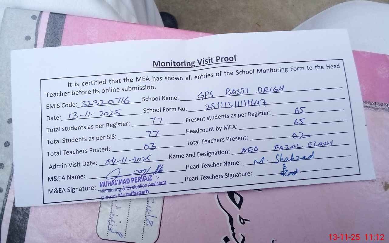 | EMIS Code: 32320716 | Name of School: GPS BASTI DRIGH | |||