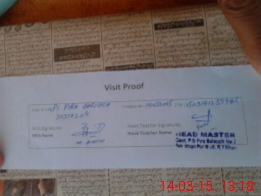 | Attendance Register | Head Teacher | MEA with School | Visit Proof |