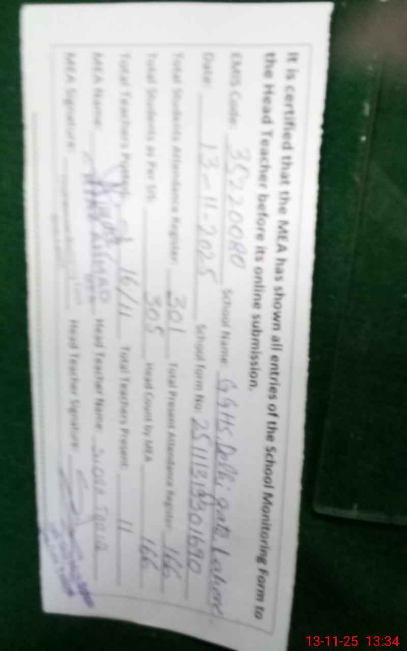 | EMIS Code: 35220080 | Name of School: GGHS DELHI GATE LAHORE | |||
