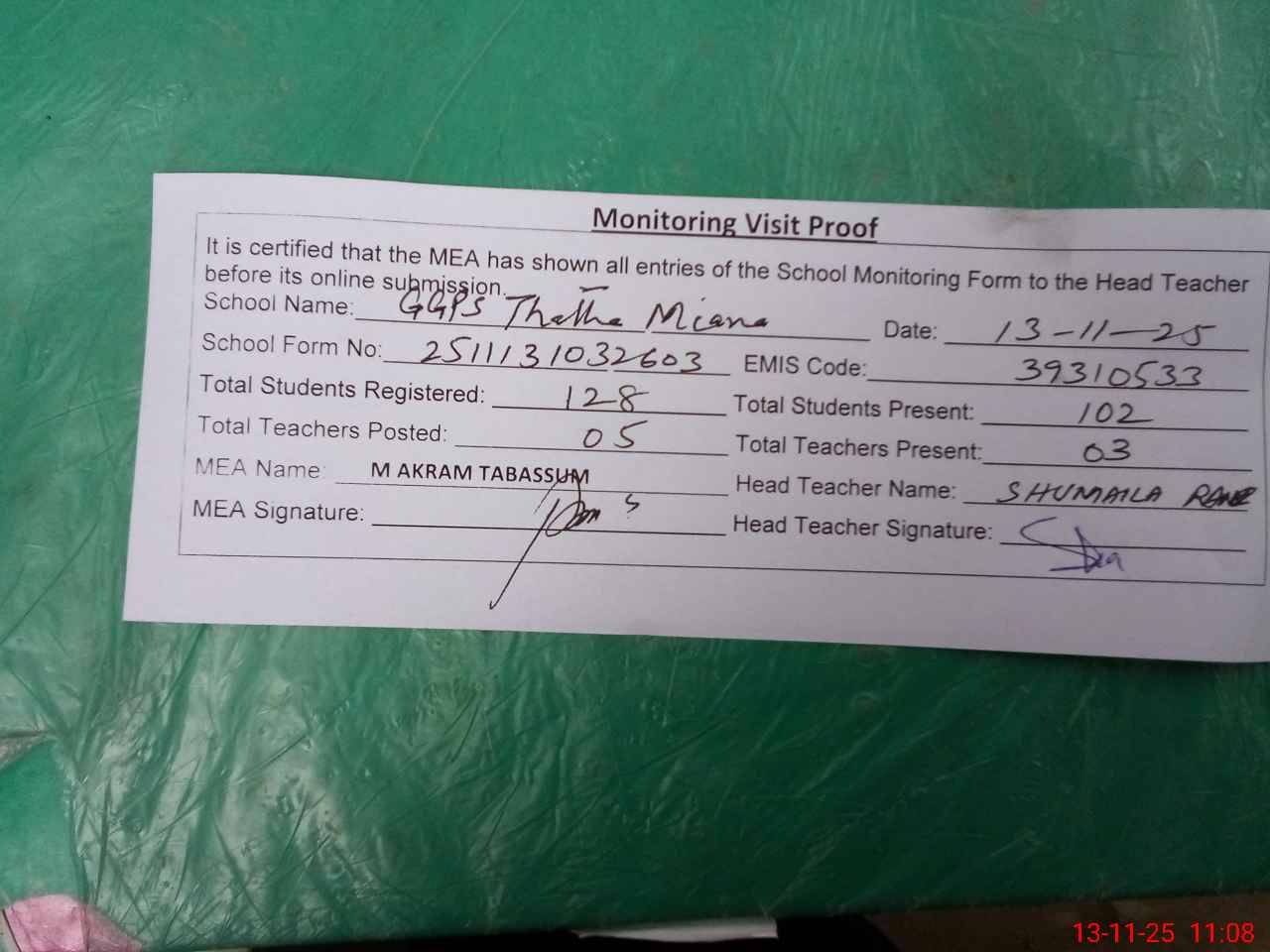 | EMIS Code: 39310533 | Name of School: GGPS THATHA MIANA | |||