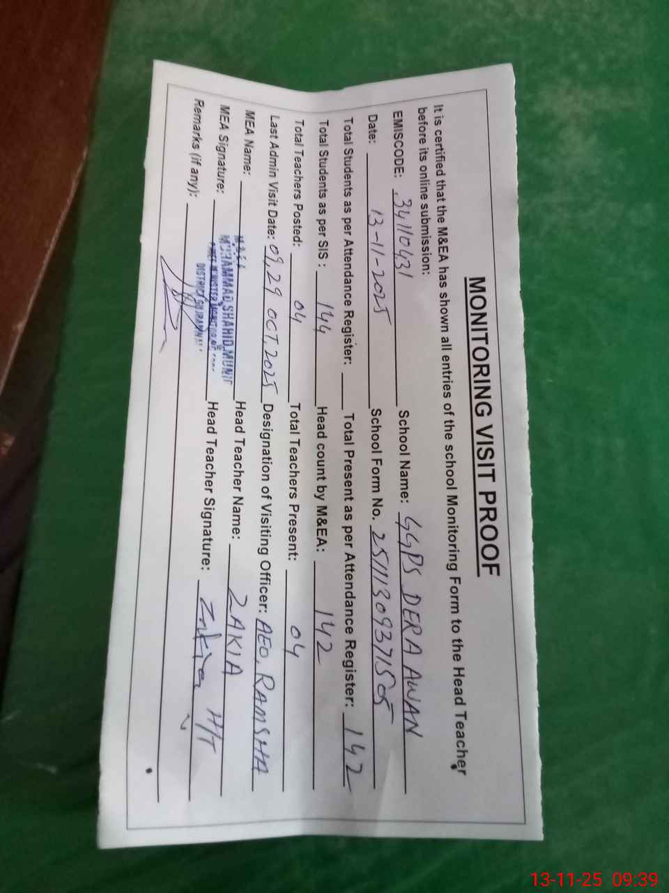 | EMIS Code: 34110431 | Name of School: GGPS DERA AWAN | |||