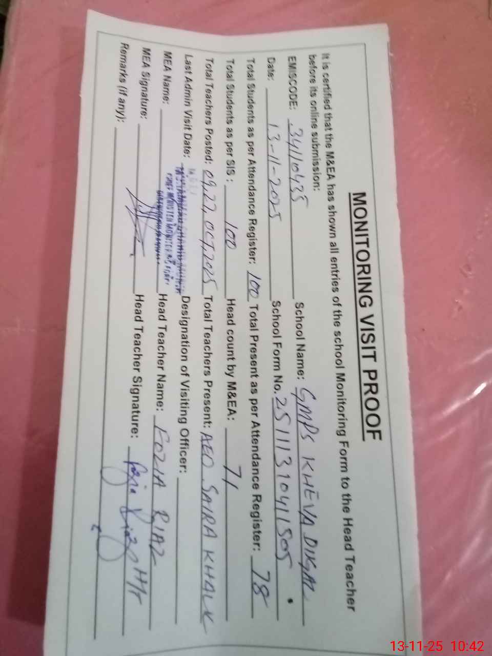 | EMIS Code: 34110435 | Name of School: GMPS KHEVA DUGAL | |||