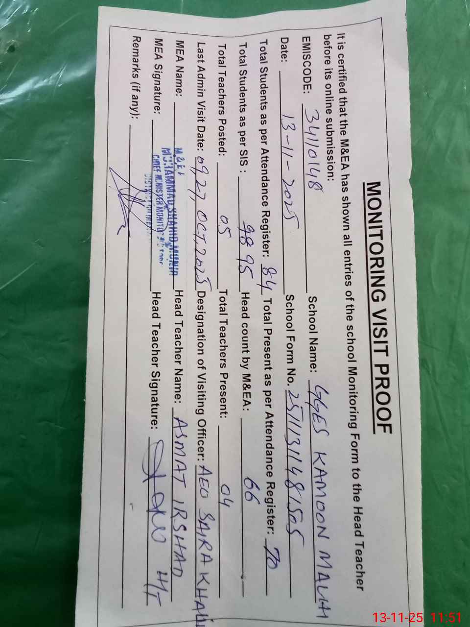 | EMIS Code: 34110148 | Name of School: GGES KAMOON MALHI | |||