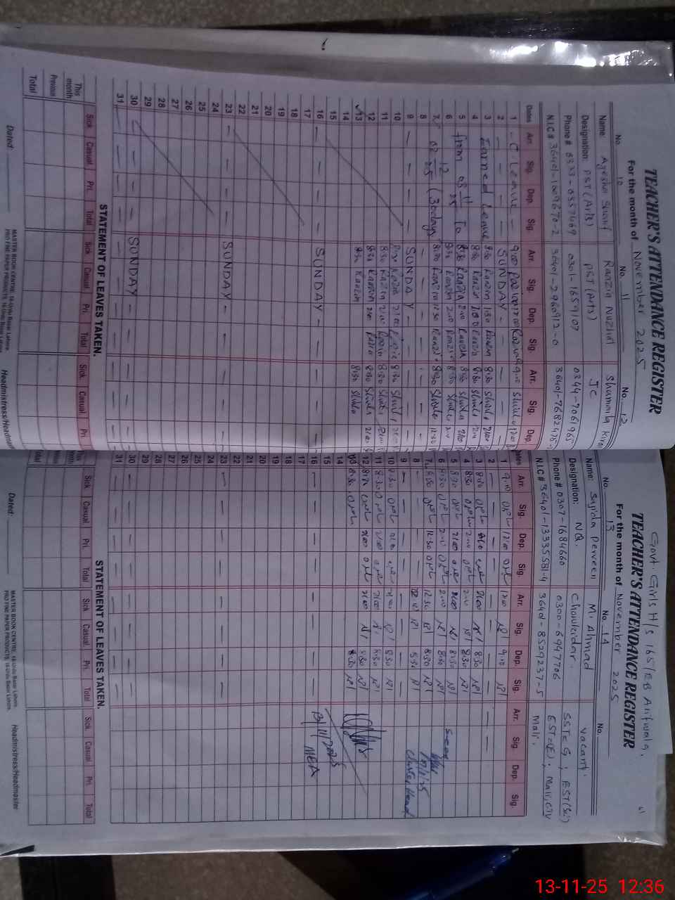 | Name: NA**** GU**** Designation: (School Headmaster's/Headmistress's) SST (SCIENCE) Phone/Cell Number: 03**** |