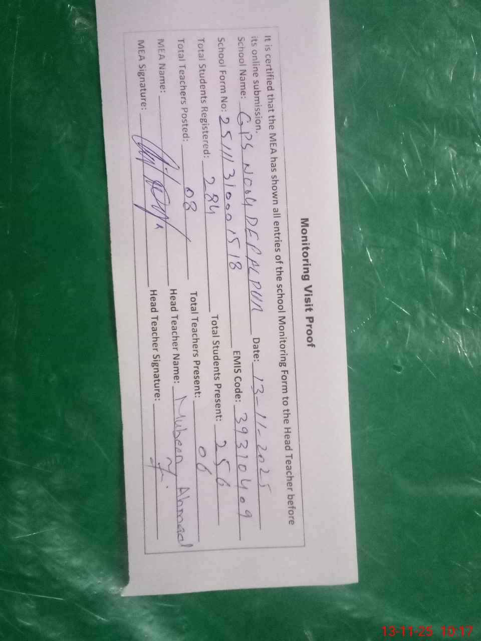 | EMIS Code: 39310409 | Name of School: GPS NO.4 DEPALPUR | |||