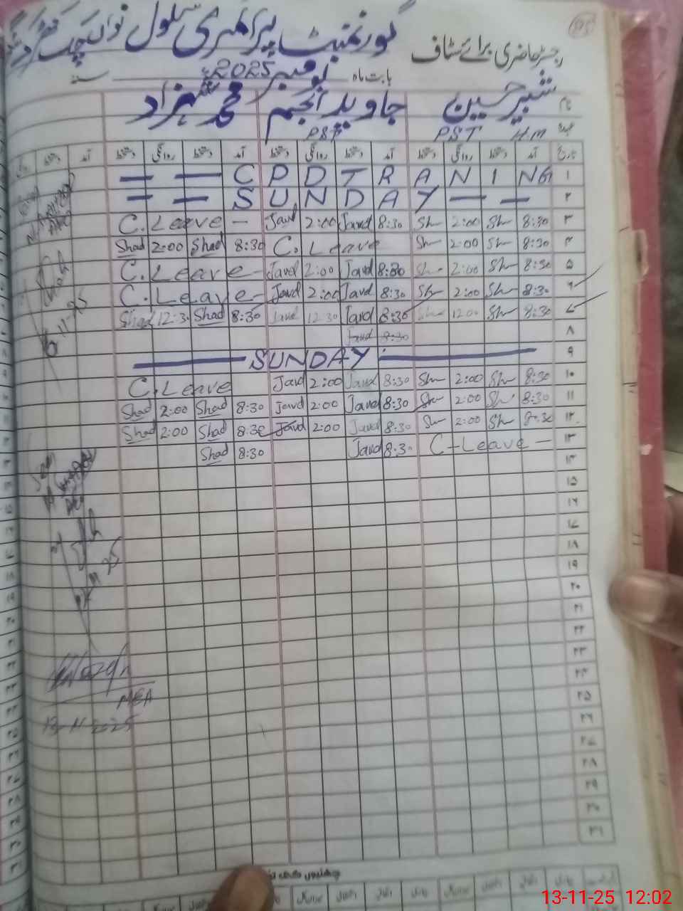 | CNIC | Full Name | Designation | R/C | Absence during last cal. month |