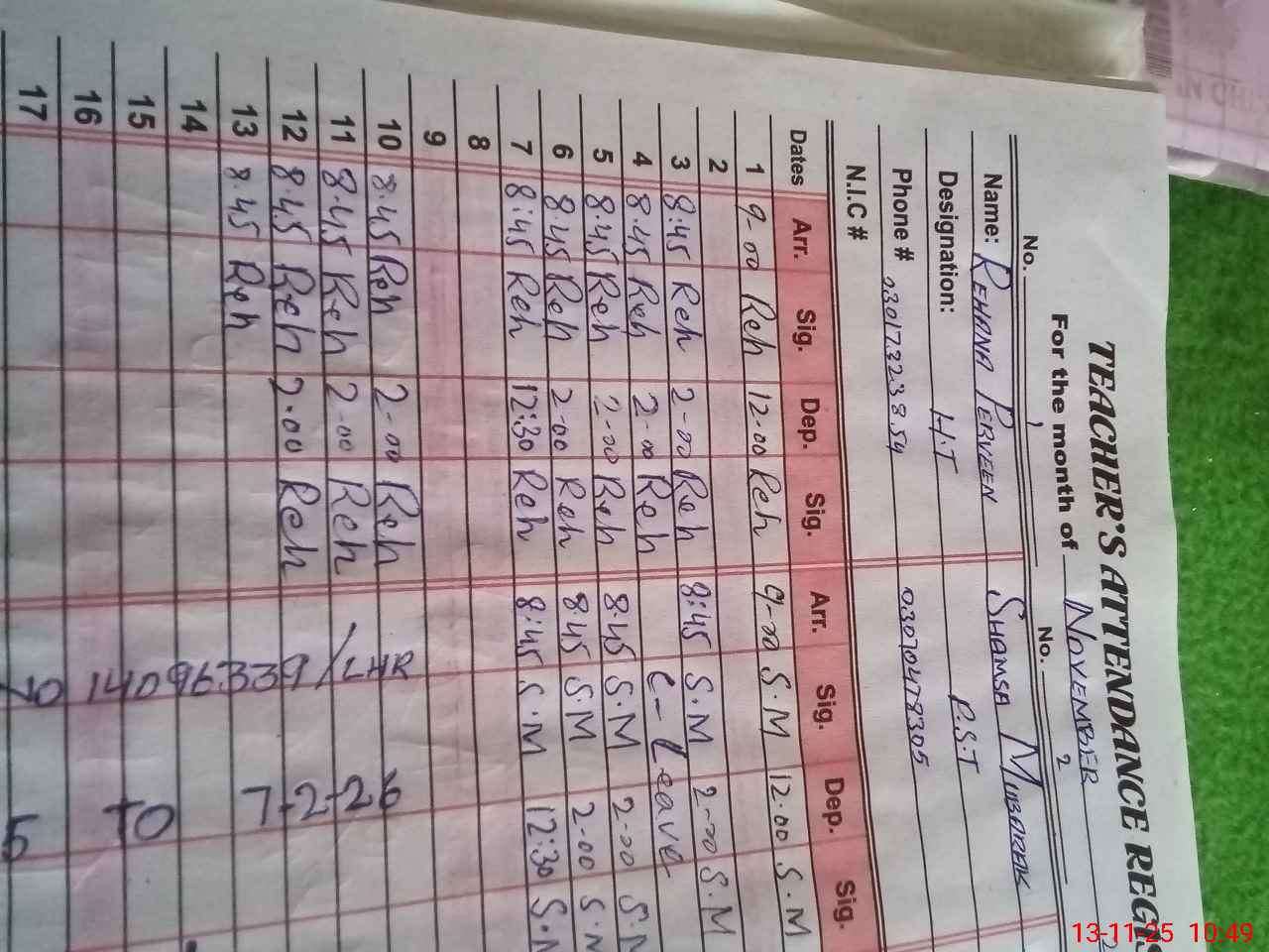 | Name: RE**** PE**** Designation: (School Headmaster's/Headmistress's) Head Mistress Phone/Cell Number: 03**** |