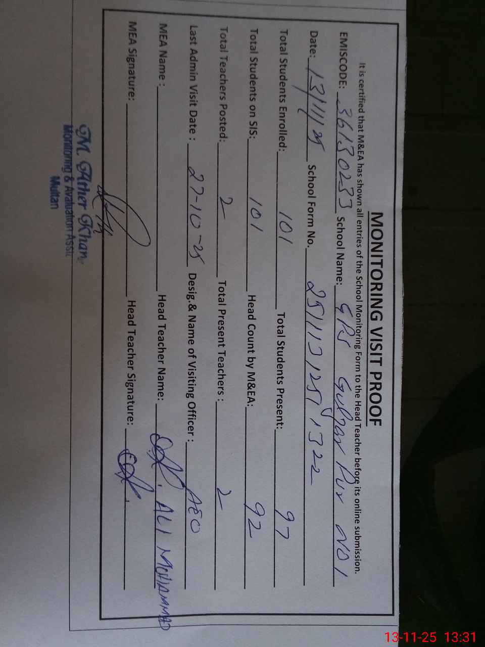 | EMIS Code: 36130233 | Name of School: GPS GULZAR PUR NO.1 P/O GULZAR PUR | |||