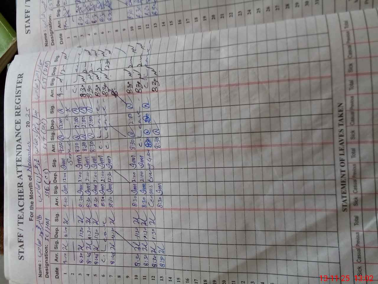| CNIC | Full Name | Designation | R/C | Absence During Last Calender Month |