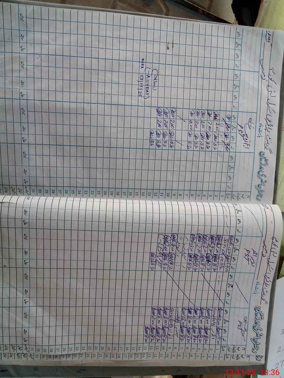 | Monitoring Date: 13-11-2025 | Start Time: 13-11-2025 12:40 PM | End Time: 13-11-2025 01:45 PM | Name of MEA: Mu**** As**** Sh**** | |