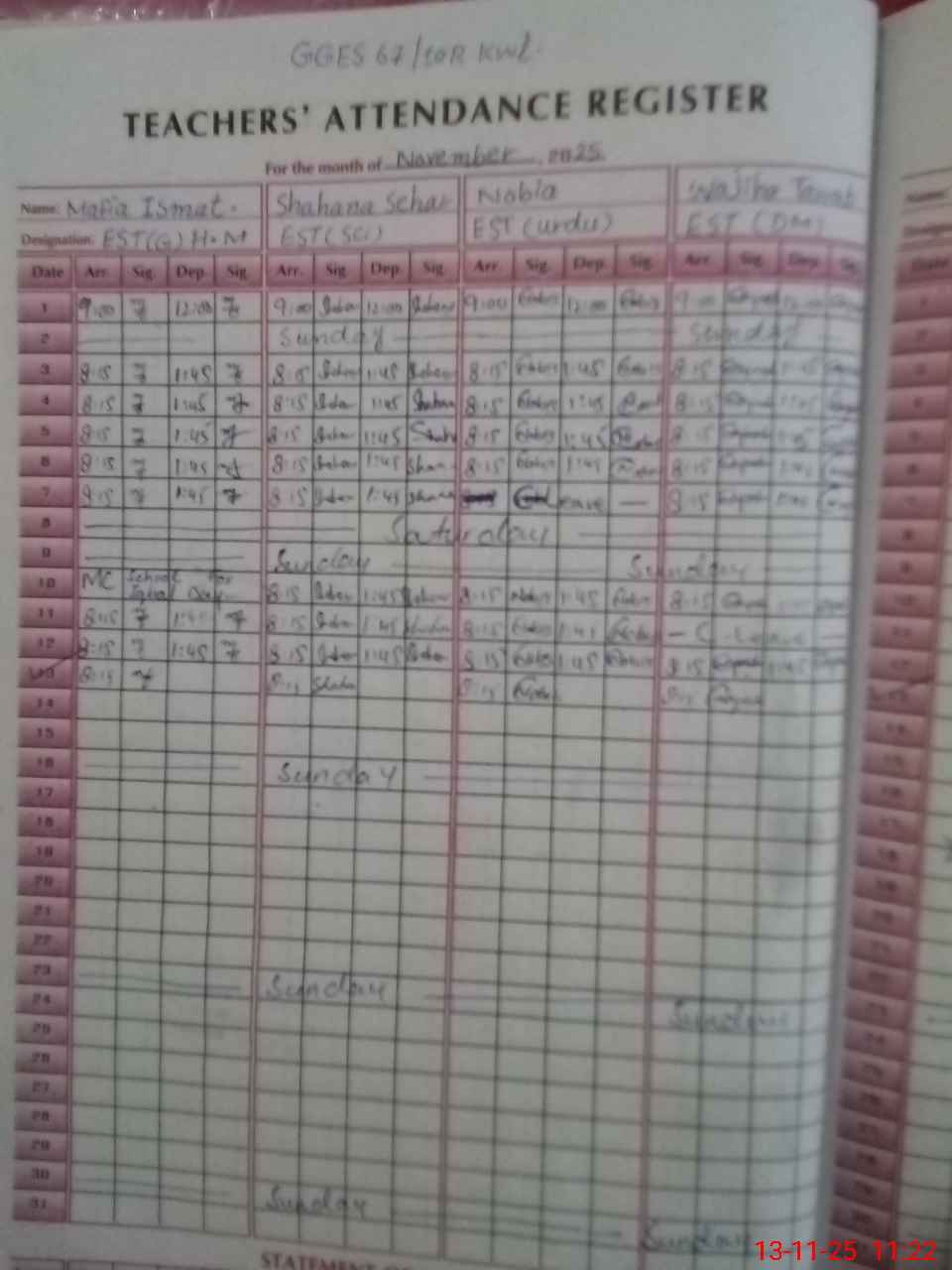 | Name: Ma**** Is**** Designation: (School Headmaster's/Headmistress's) EST (G) Phone/Cell Number: 03**** |