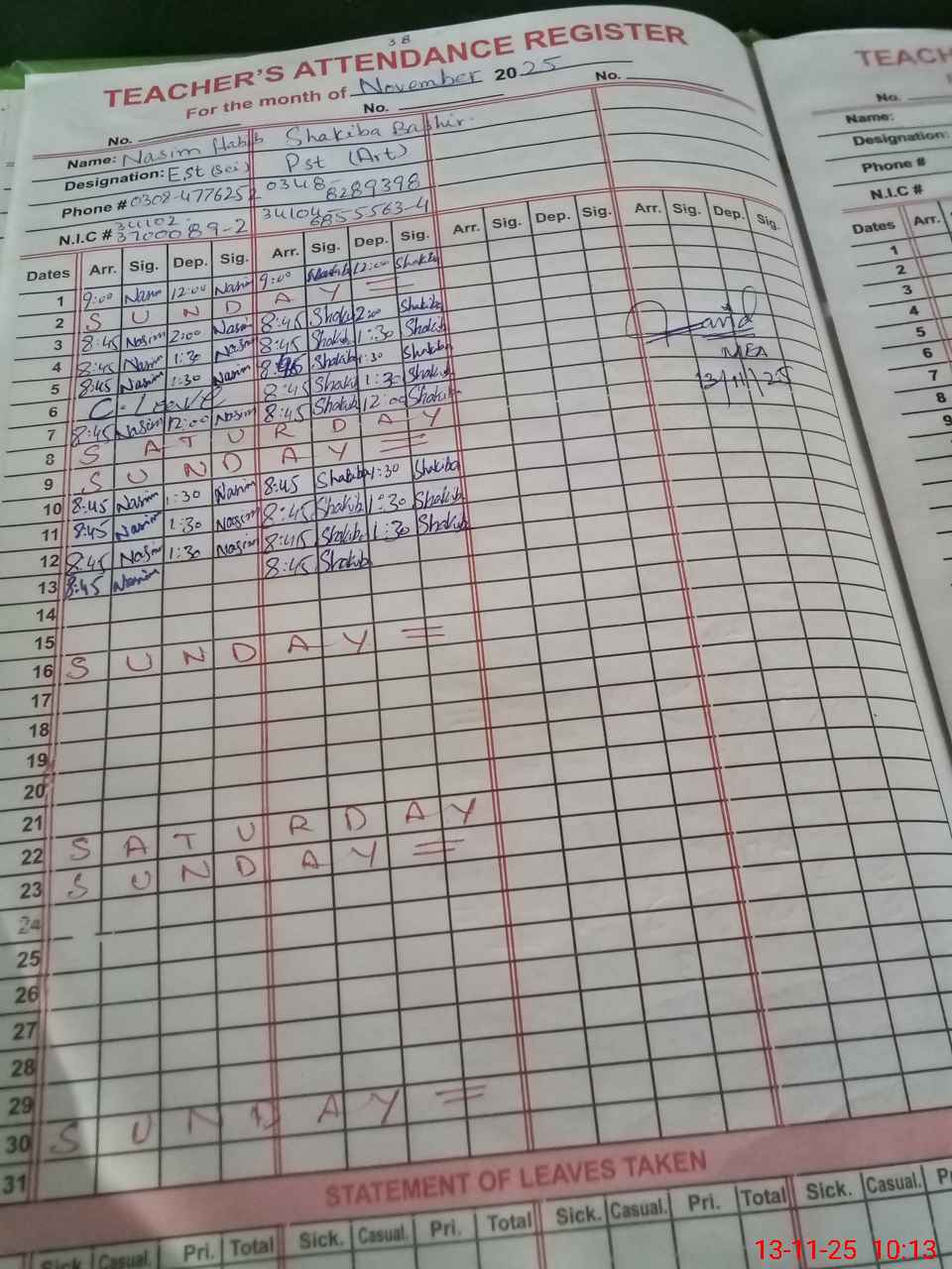 | Name: NA**** PE**** Designation: (School Headmaster's/Headmistress's) PST Phone/Cell Number: 03**** |