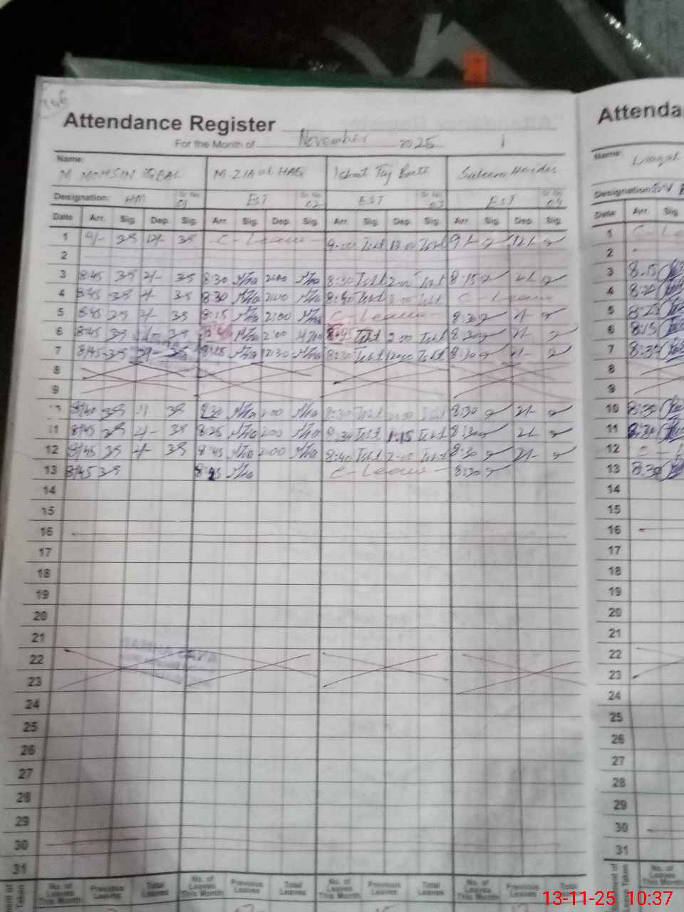 | CNIC | Full Name | Designation | R/C | Absence During Last Calender Month |