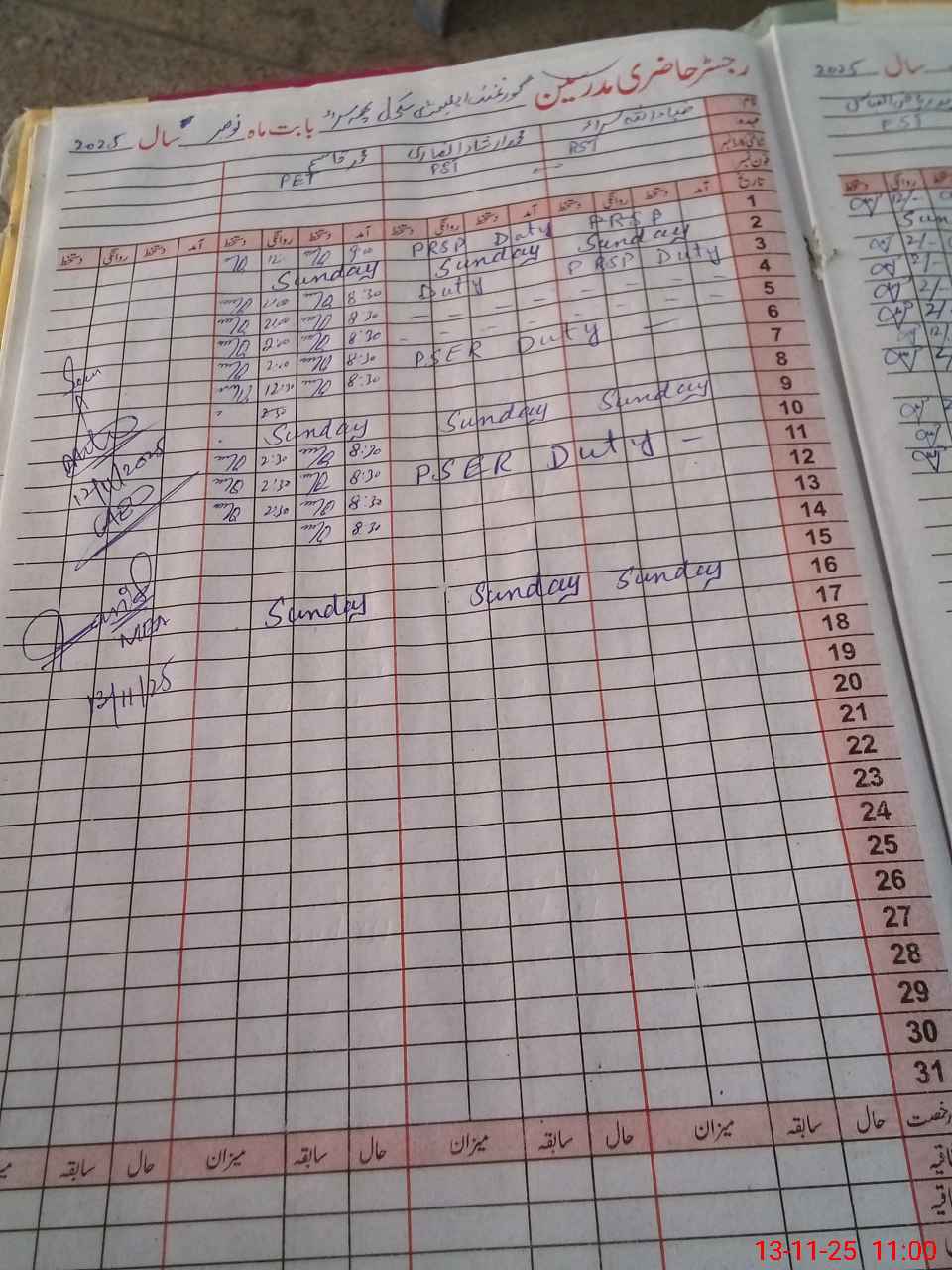| CNIC | Full Name | Designation | R/C | Absence During Last Calender Month |
