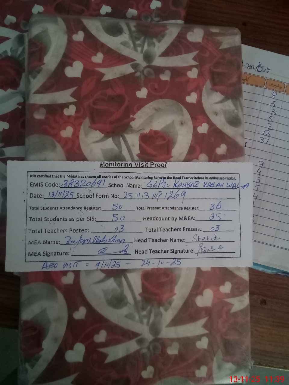 | EMIS Code: 38320691 | Name of School: GGPS RANBAZ KHELAN WALA | |||