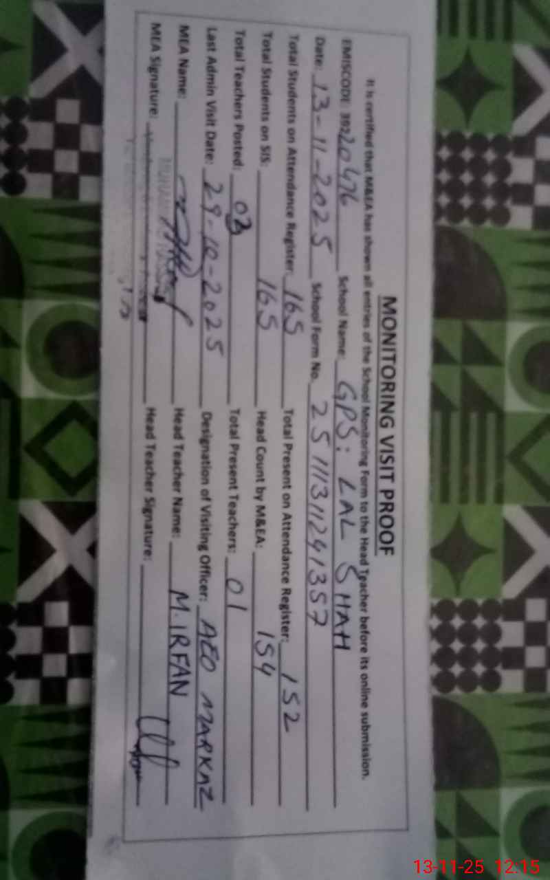 | EMIS Code: 39220476 | Name of School: GPS LAL SHAH | |||