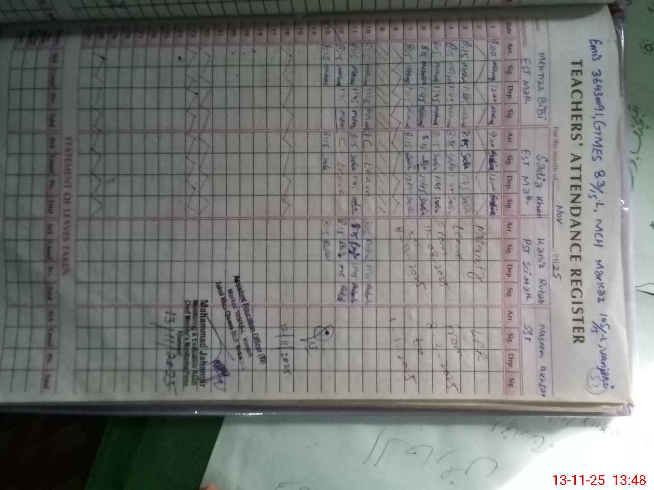 | Certified that this School was Inspected by the Undersigned MEA/DMO Today and the Information Stated Above is as Per Record. | |||||
