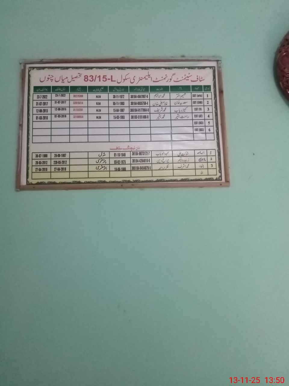 | EMIS Code: 36430091 | Name of School: GMES 83/15-L, MIAN CHANNU | |||