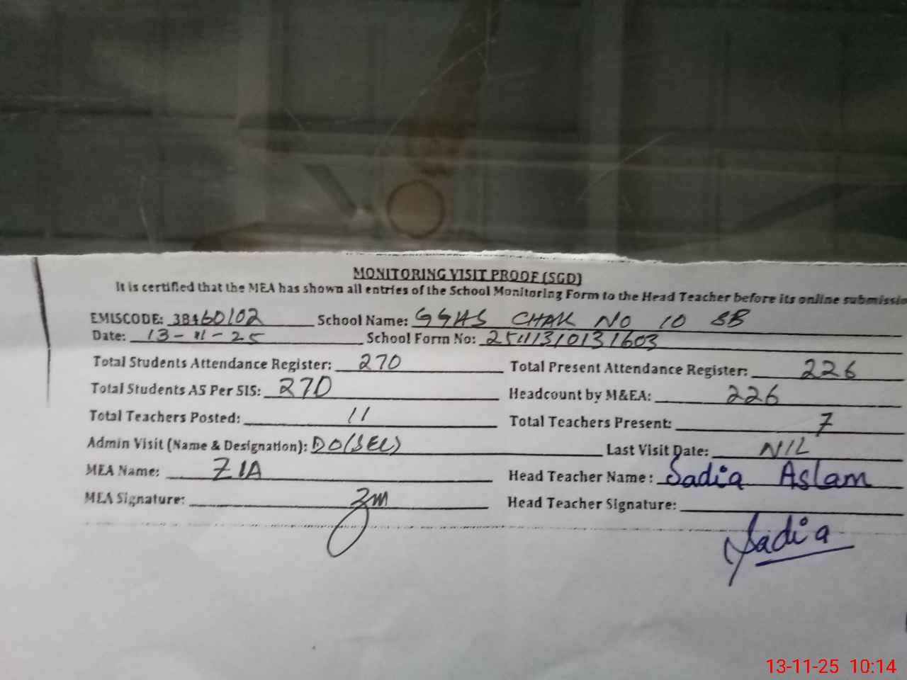 | EMIS Code: 38460102 | Name of School: GGHS CHAK NO.10 SB | |||