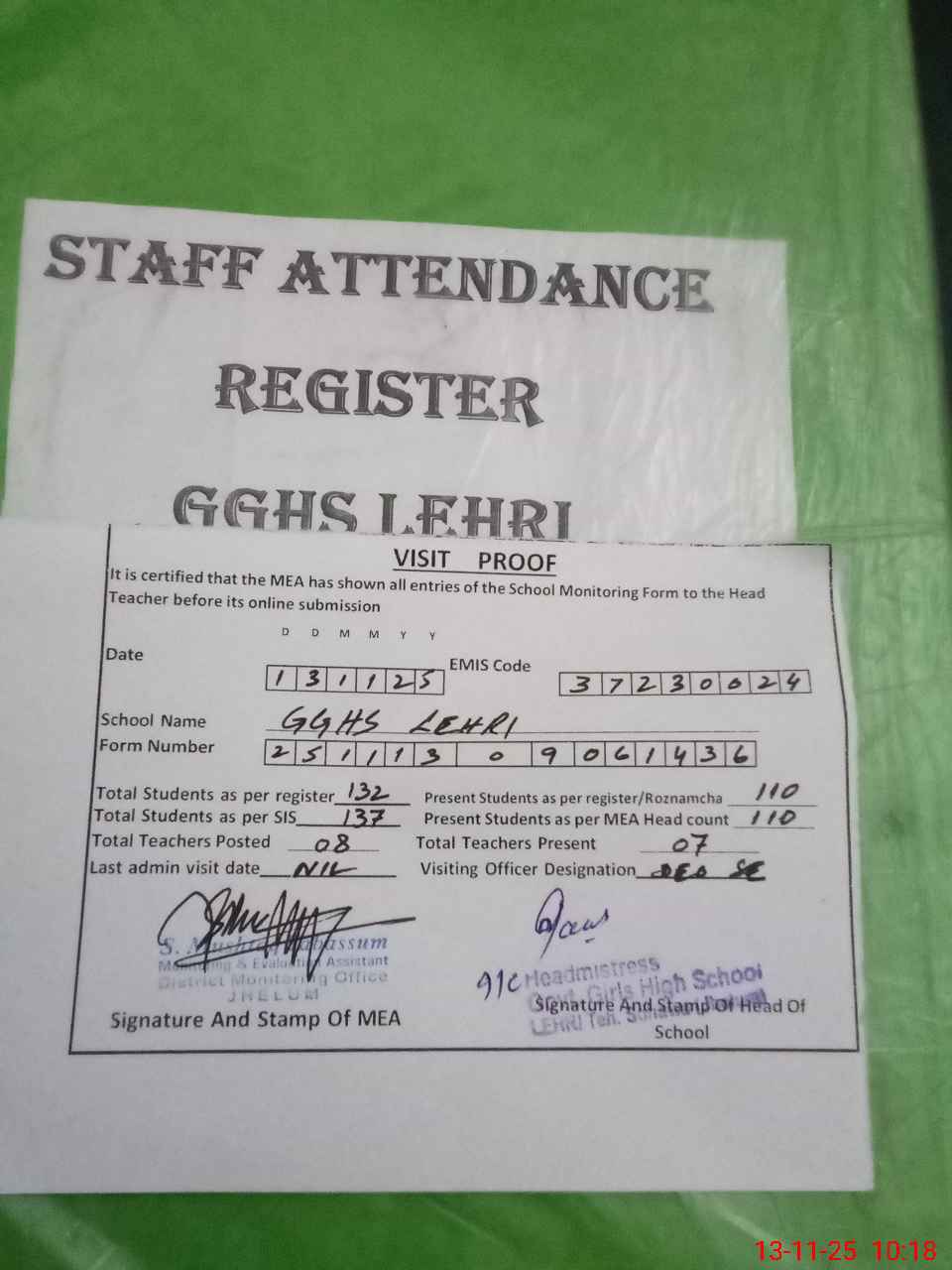 | EMIS Code: 37230024 | Name of School: GGHS LEHRI | |||
