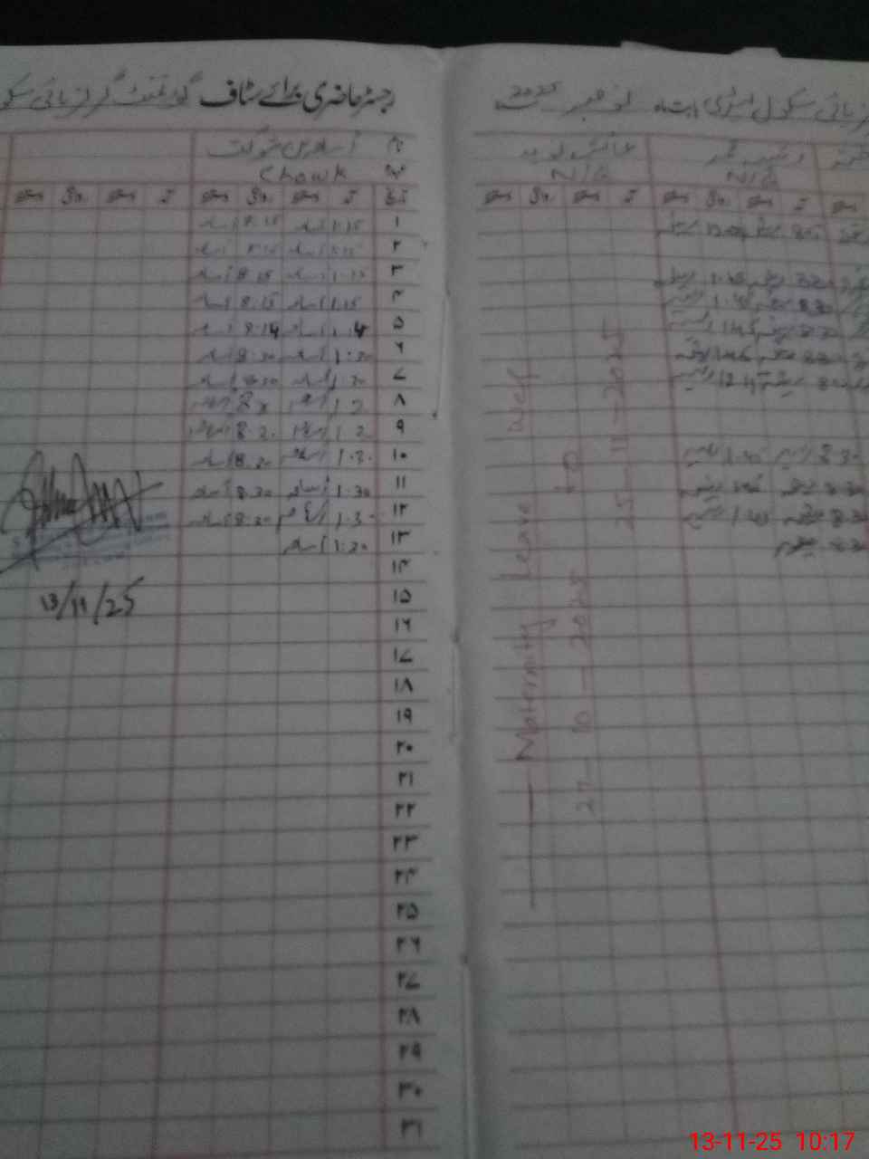 | Total no. of Classrooms: 12 No. of Classrooms Used for Teaching: 7 No. of Classrooms Storing Old Furniture, FTBs, etc: 0Comments if Any: HT Adeela Kanwal SSE is on C L today School SIS is not working or updated SIS students entered from PMIU App |
